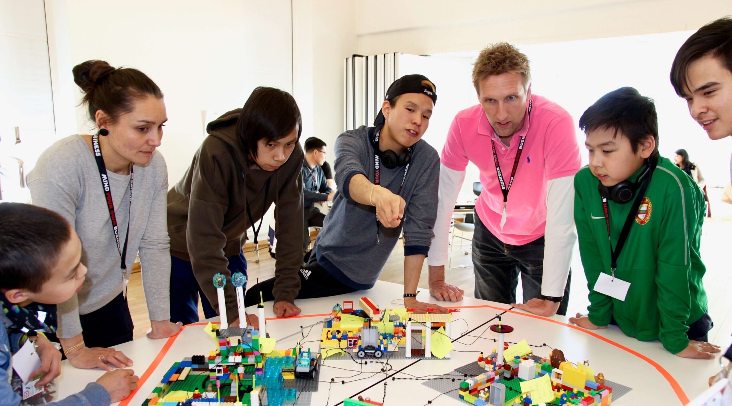 Drengene samles om bordene for at udtænke og bygge konceptet til madboden. Med legoklodser konstruerer de deres idéer, så de kan udvikle et design. Det er en god måde vise sine tanker til hinanden, fortæller 13-årige Karl Frederik, som er en del af afdelingen Salg & Sponsorer i mikrovirksomheden.